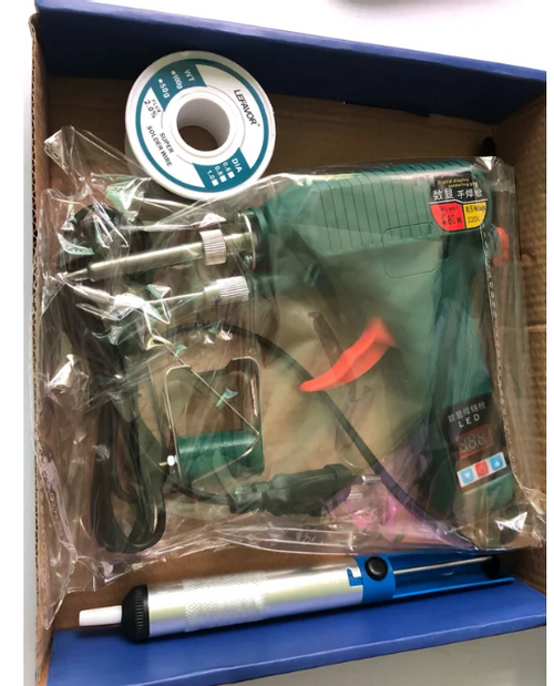 O kit básico inclui o soldador. Alguns modelos promocionais podem vir com suporte, esponja de limpeza e fio de solda. Verifique antes de comprar.